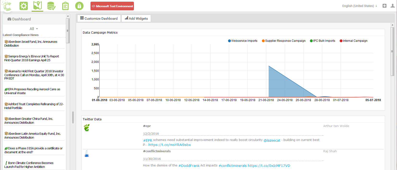 The layout of dashboard can be altered by selecting the Customize Dashboard button. Further widgets can be added to the Dashboard by selecting the Add Widgets button.