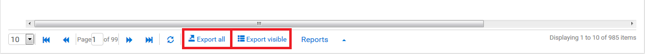 Export all - This will return all of the top-level items currently shown in the grid. For example if you had run a search that returned 5 items then a single line for each item would be exported, but none none of the sub items.