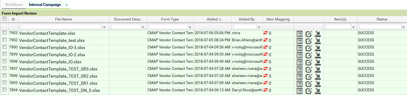 Suppliers and Supplier Contacts can be manually imported into CMAP in bulk by using the Vendor Contact Template Excel form;