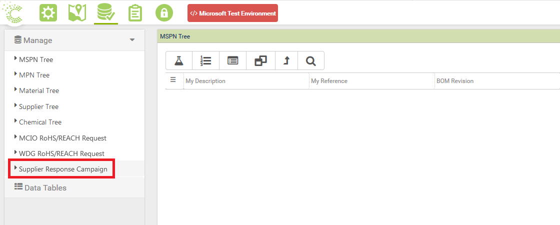 Step 1 - Click on Supplier Response Campaign from the Data -> Manage menu