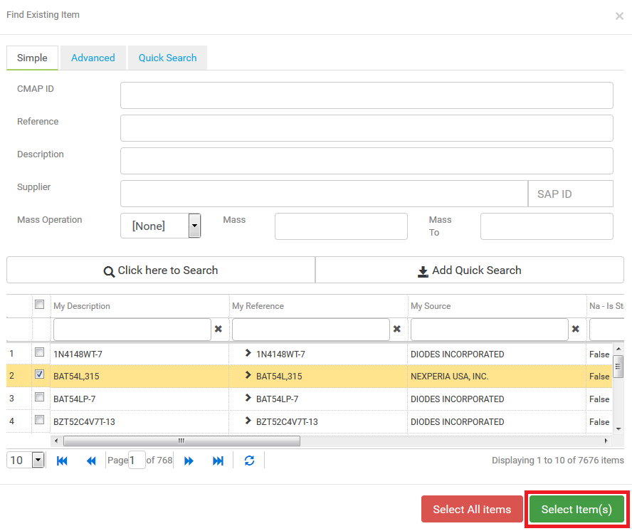 Then search for required Product, tick the checkbox of the rows required to be mapped and press Select Item(s)